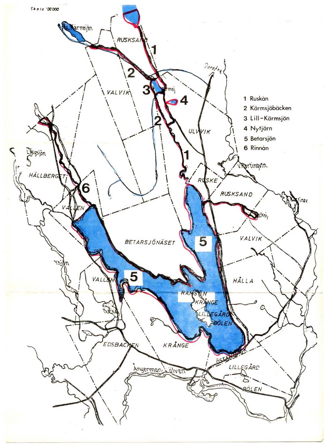 Bildkälla: Översiktskarta till fiskeutredning om Betarsjöns fiskevårdsområde.