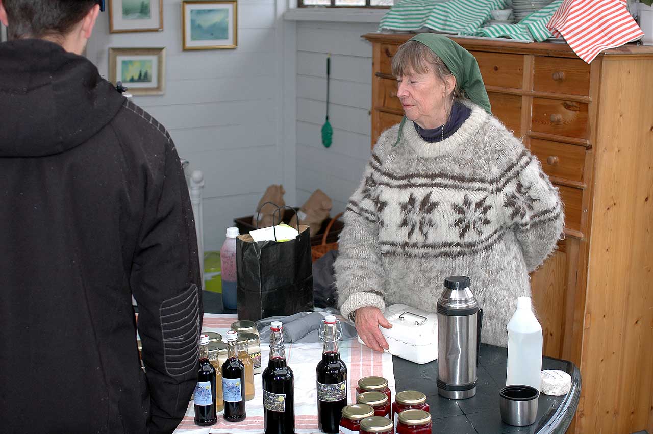Brita från Tara har sålt så mycket god sylt så hon håller på att somna... och nej det är fotografen som tar dåliga kort :-). Produkterna från Tara Naturprodukter och Bigårdar hade verkligen stor efterfrågan.