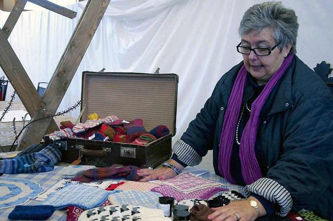 Marianne Gustafsson sålde idag Päivi Westbergs hemstickade produkter från Bysjö.