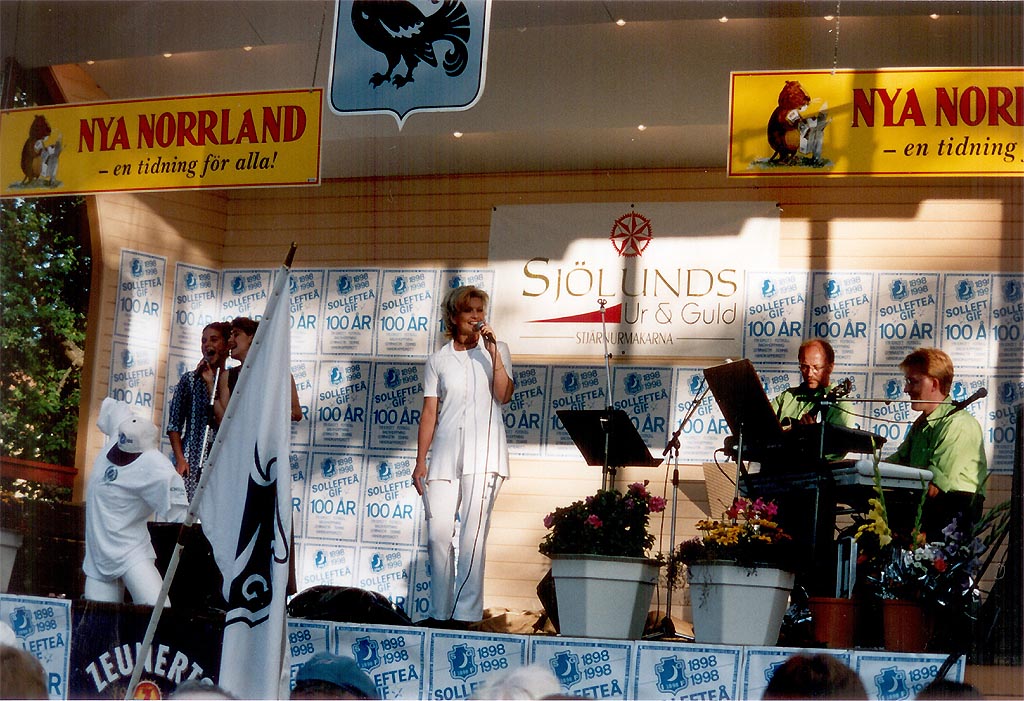 Helen Sjöholm i Sollefteå stadspark 1998. Och Nicke Sjödin kommenterade denna kväll med