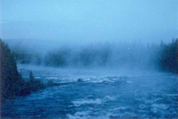 Edensforsen halvtvå söndagmorgon 22 juli 2001. Vi är på väg hem från Jerrys konsert. Det är vattenpåsläpp i forsen, för att lätta på trycket i vattenmagasinen ovanom Junsele, denna regniga sommar. Annars brukar älven vara torrlagd här sommartid. Soluppgången börjar anas med ett trollskt sommarnattsljus, men vi ska hem och sova!