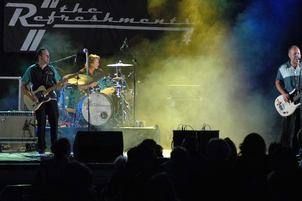 Rock & Bike. The Refreshment. Sångaren Joakim Arnell som även måste sköta basen.