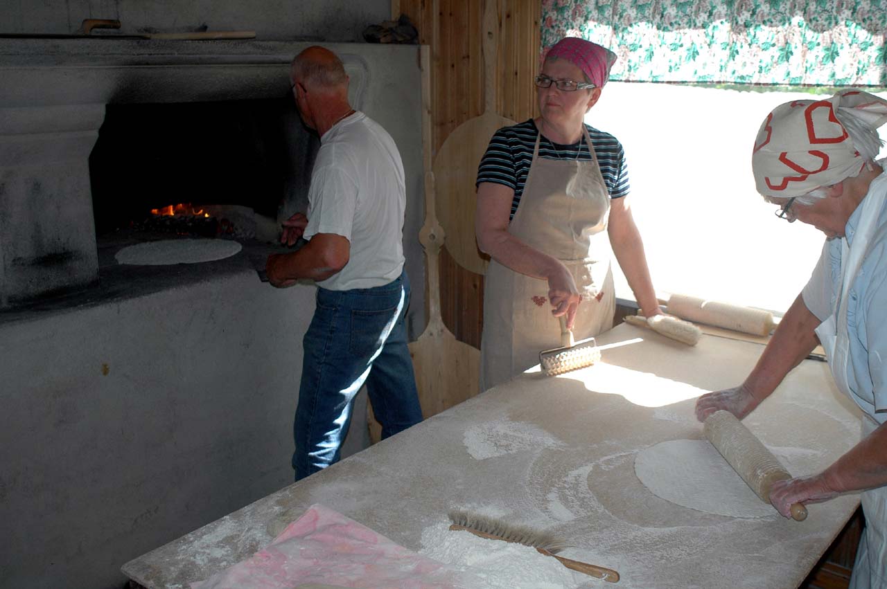 Tunnbrödsbak i bryggstugan. Edens byadag 2009-07-11