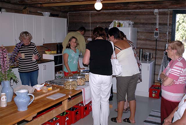 Försäljning av kaffe, Emmas skorpor, tunnbröd mm på nedervåningen i logen.