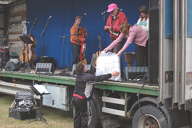 Lotterivinnarna belönades av Nicke och medhjälpare. Här lite sovtillbehör till en av vinnarna.