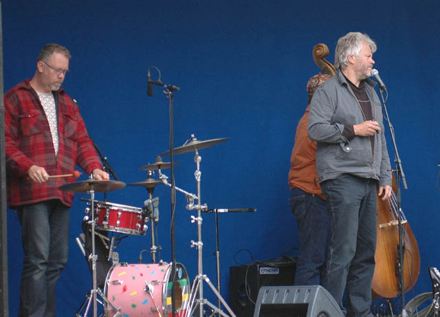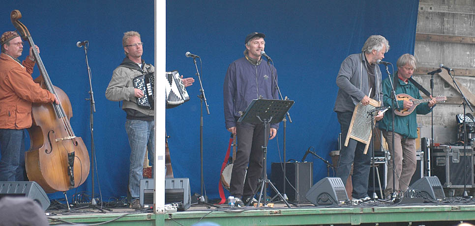 Euskefeurat. Ronny Eriksson framför trummisen och basisten.