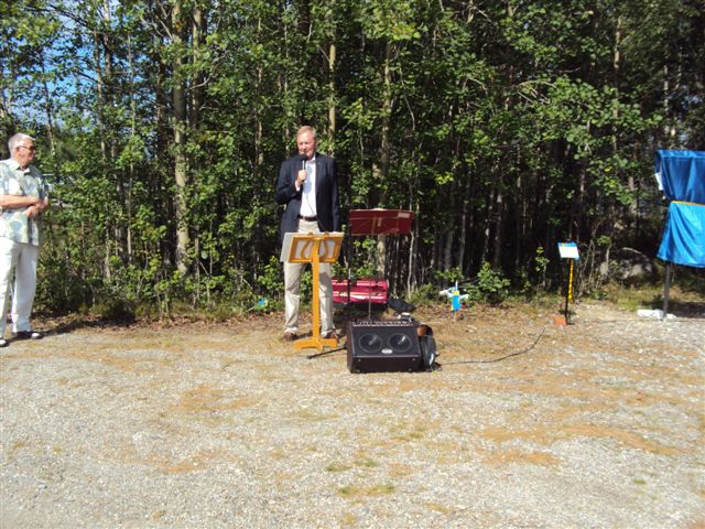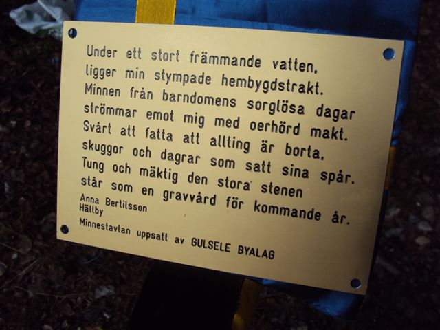Invigning av minnestavla över Hällby – byn under vatten. I strålande solsken och i närvaro av ett 80-tal besökare, invigde Landshövding Bo Källstrand söndagen 3/7 2011 på plats vid Hällbymagasinet, en minnestavla över byn Hällby. År 1970 tystnade den sista forsen efter Ångermanälven på sträckan från länsgränsen ner till Junsele, när Hällby kraftverk och dammagasin byggdes och Hällby lades under vatten. Byn med anor från sent 1800-tal bestod av tio gårdar och jordbruk samt en affär och här bodde ett 50-tal personer. Gårdarna löstes in, revs eller brändes och markerna fylldes med vatten, för att kunna reglera vattentillgången nedströms mot Junsele, i kraftverken i Gulsele, Degerforsen och Edensforsen och vidare….. Göran Lundqvist hade innan byn lades under vatten fotograferat av gårdarna och dessa fotografier är nu sammansatta, till den panoramabild som nu utgör den minnestavla som är uppsatt. Landshövdingen läste även upp den dikt av Anna Bertilsson som finns på minnesskylten. Tal under invigningen framfördes av ordföranden i Gulsele byalag Gillis Gustavsson och bybor från Gulsele underhöll med finstämd och vacker musik och sång. Vid denna trevliga dag upp vid Hällbydammen, blev vi åter påmind om hur viktigt det är för oss alla att finna och dokumentera och vårda vår gemensamma historia här i Junsele och Västra Ångermanland. – att nu finns åter minnena på plats efter Hällby - byn under vattnet .