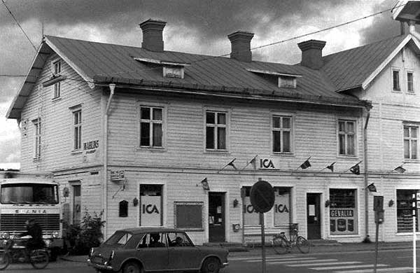 Gamla ICA, nedriven 1975. Detta foto tog jag 1974 och många äldre vet ju att detta egentligen hette Söderdahls tidigare. Bröderna Erik och Gustaf Söderdahl var småländska bröder som drev handel m.m. i Krånge vid sekelskiftet 1900.