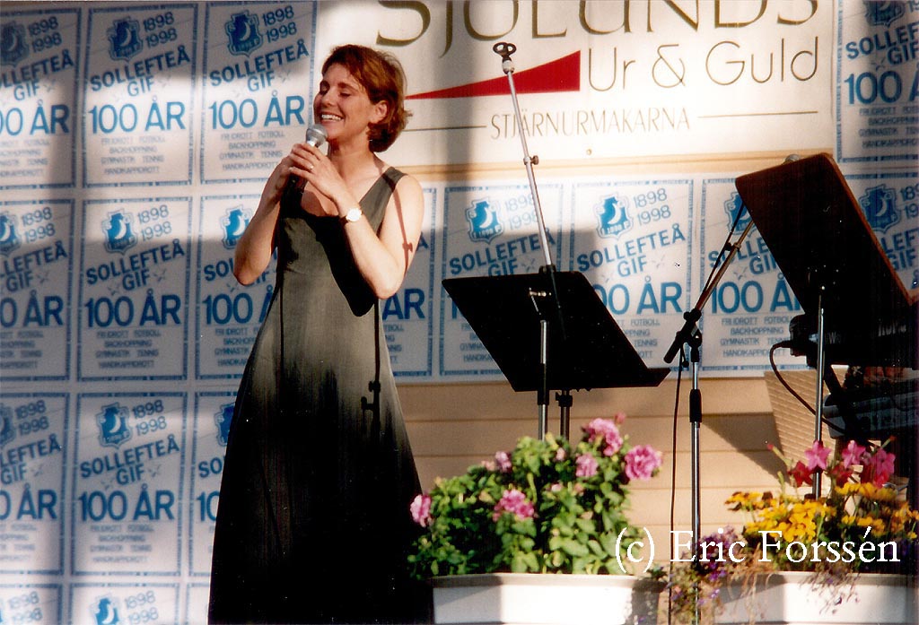 Helen Sjöholm i Sollefteå stadspark 1998. Och Nicke Sjödin kommenterade denna kväll med